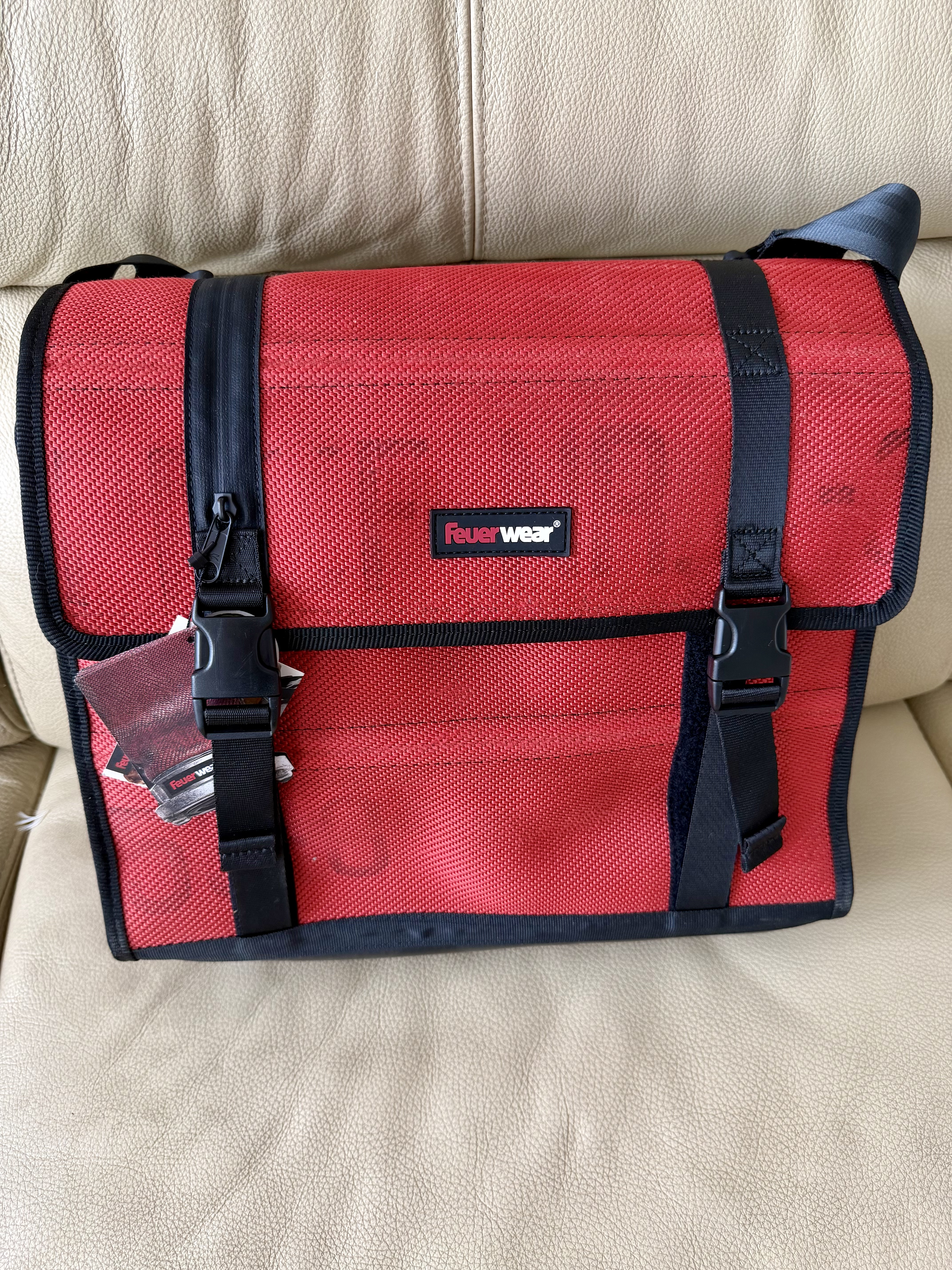Mit Messenger Bag Gordon startest Du voll durch. Gordon begleitet Dich auf dem Rad, zu Fuß und im Fluss der Großstadt. Das Volumen ist variabel und der Stil unverwechselbar: Recycelter Feuerwehrschlauch.