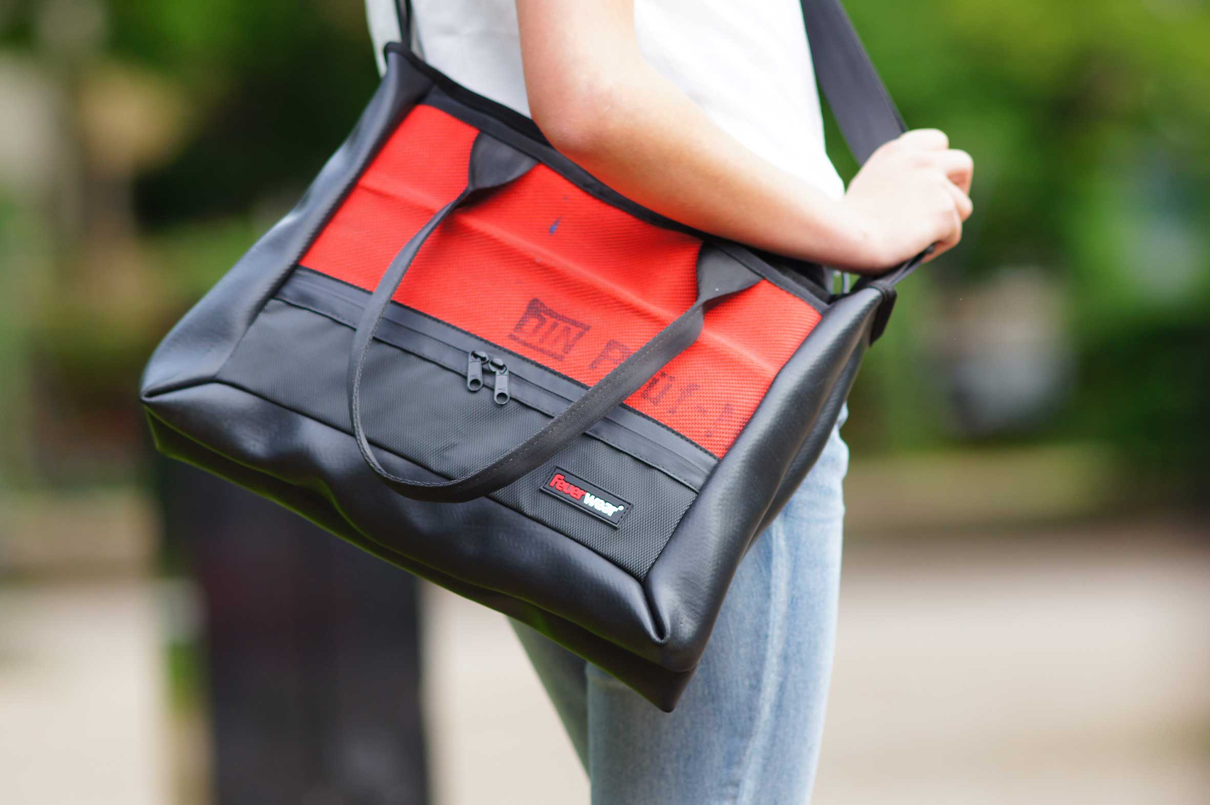 Shopper Dan aus Feuerwehrschlauch ist Deine geräumige Einkaufstasche, praktische Umhängetasche und klassische Damenhandtasche – alles in Einem. |