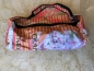 Bunter Umhänge-Beutel mit verstellbarem Gurt aus recycelten Reissäcken.