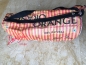 Bunter Umhänge-Beutel mit verstellbarem Gurt aus recycelten Reissäcken.