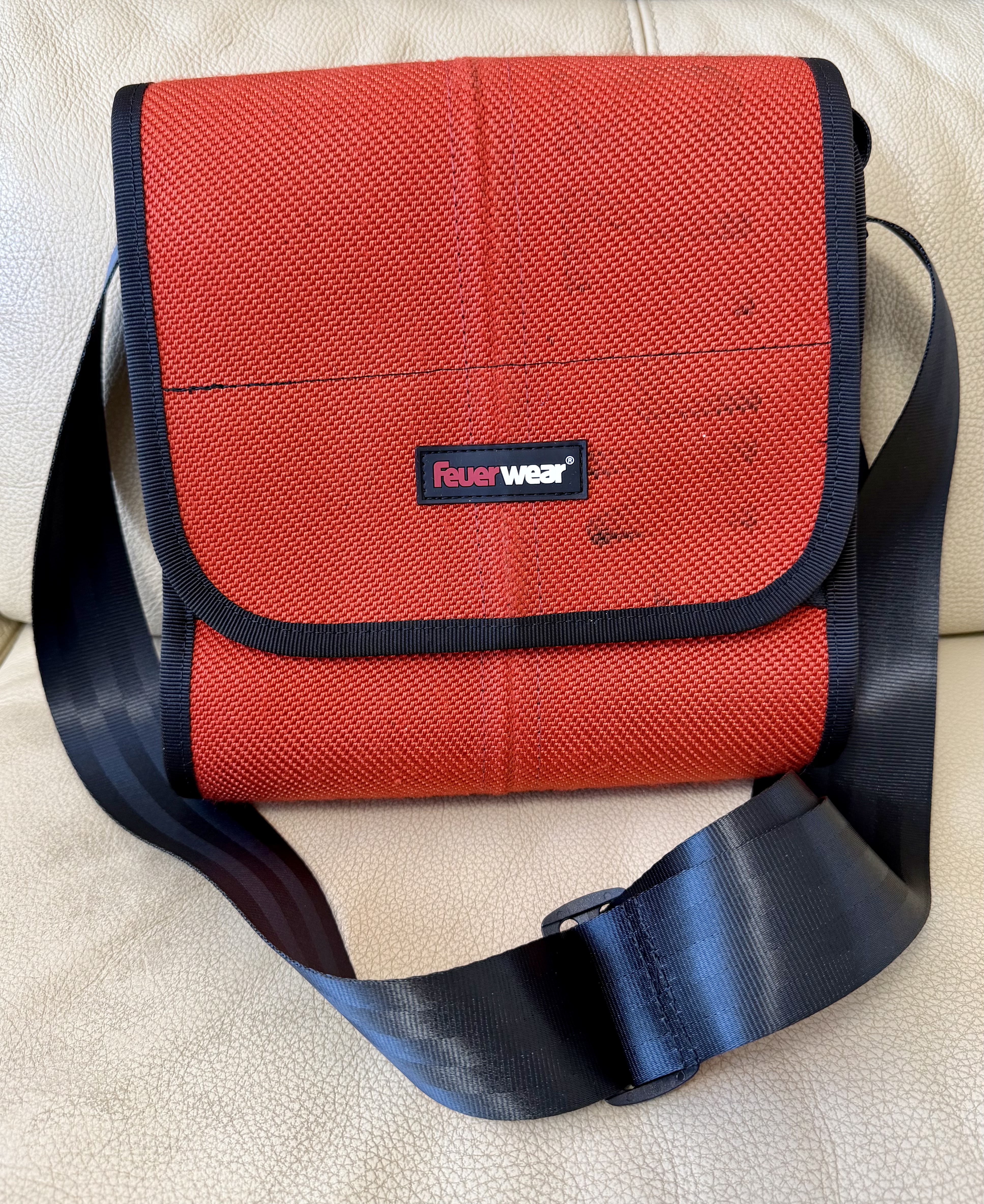 Individuelle Aufdrucke verschiedener Feuerwachen und Spuren der Einsätze bei der Feuerwehr machen jede Umhängetasche Carl zum Unikat.