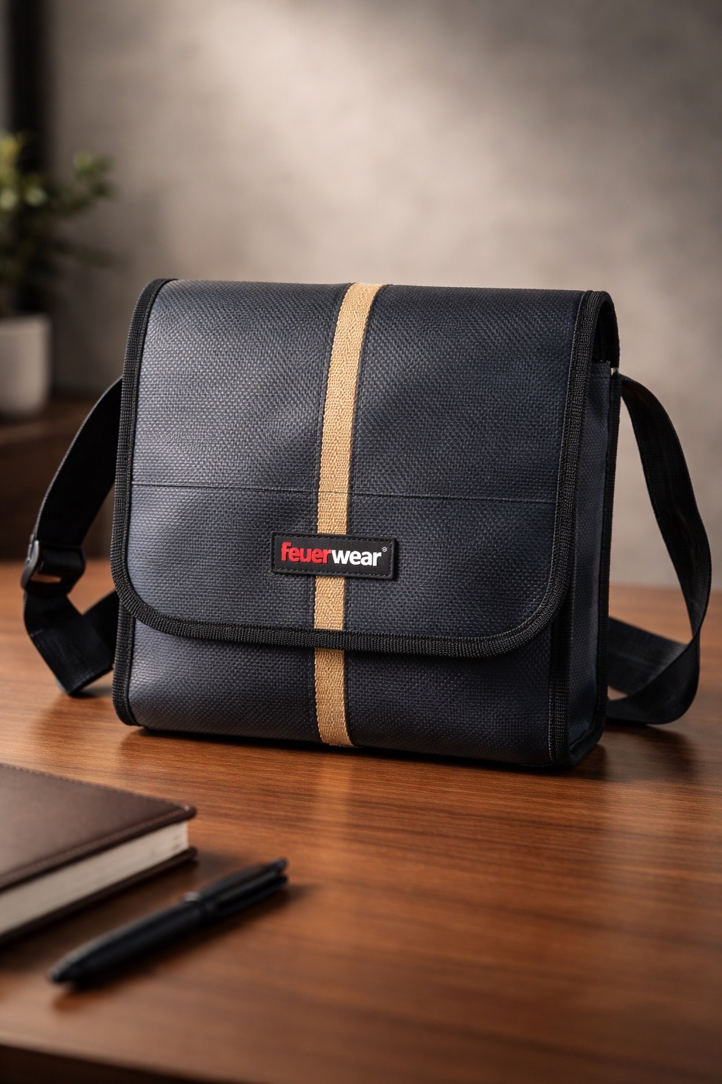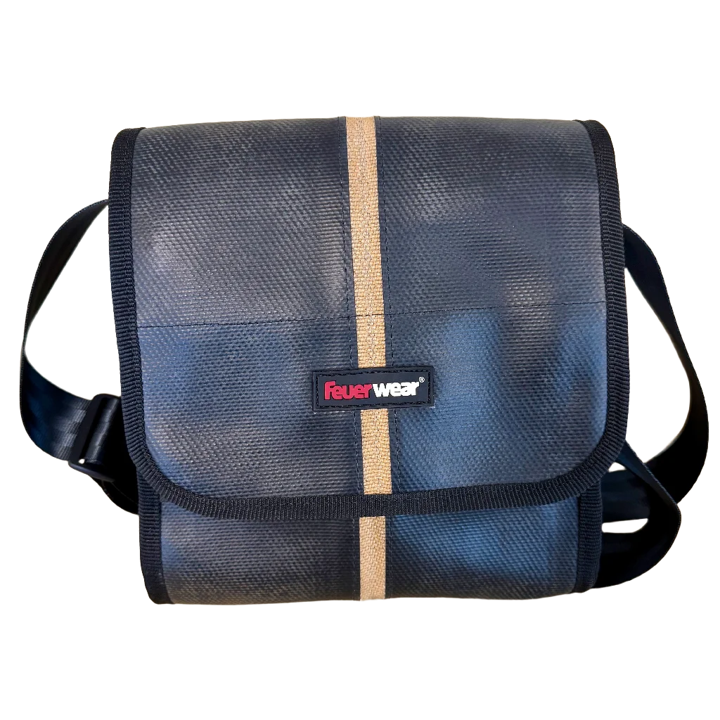 Individuelle Aufdrucke verschiedener Feuerwachen und Spuren der Einsätze bei der Feuerwehr machen jede Umhängetasche Carl zum Unikat.