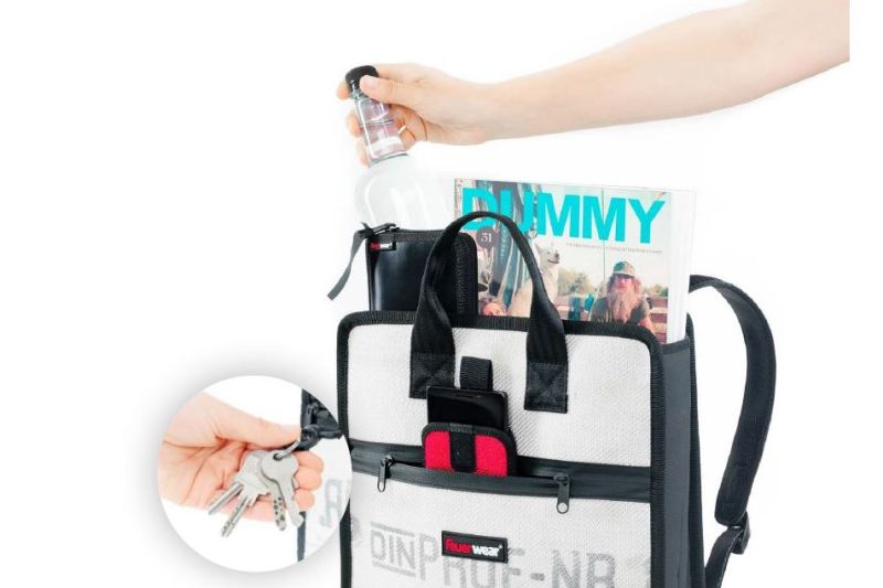 Aside from the larger Eric backpack, Feuerwear fans can now look forward to the first flexible ladies’ backpack made from used fire hose. Every Elvis is a one-of-a-kind product made of recycled fire hose, with a special design that underscores your urban lifestyle throughout the day in a unique way. Elvis is available in the hose colors red and white, as well as black.