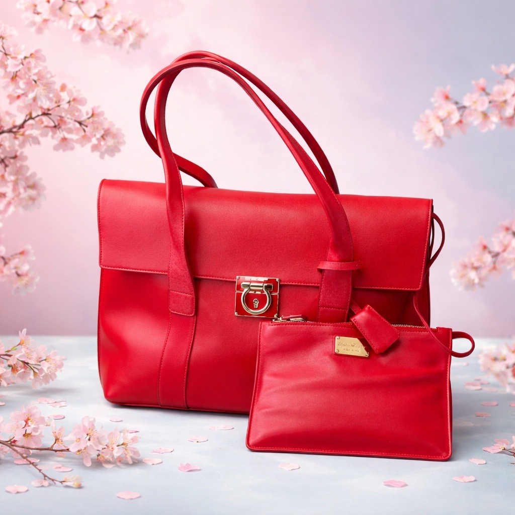 Salvador Ferragamo red handbag made from 100% calfskin leather