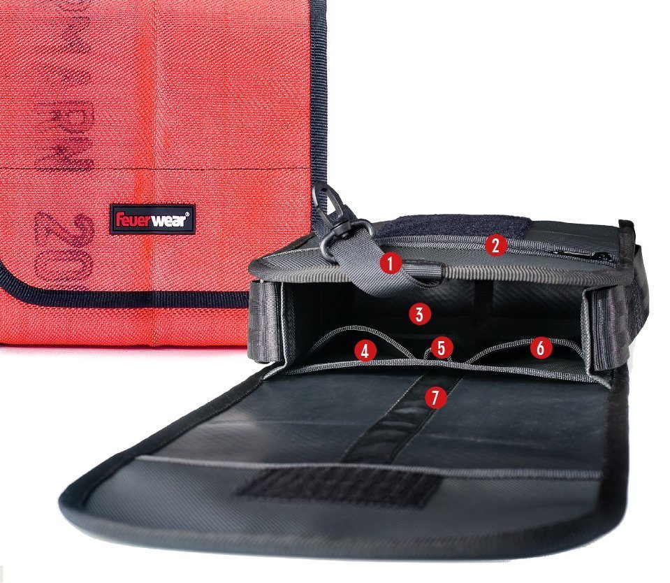 The unique markings from numerous fire stations and traces of use on firefighting missions make every shoulder bag Carl a one-of-a-kind piece.