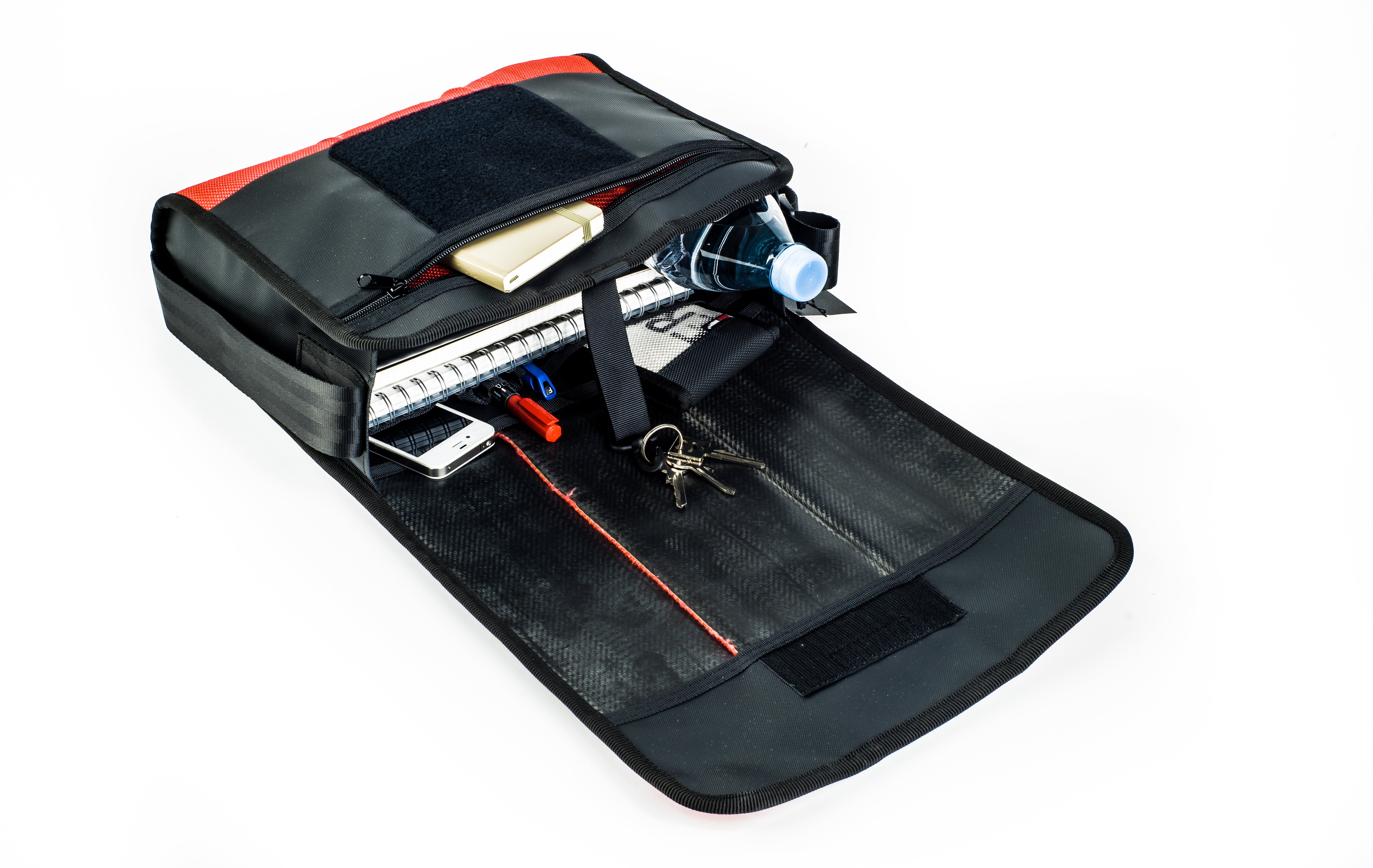 Walter offers endless space: Smartphone, keys, wallet, pens, notepad, 13” laptop, A4 file folder and maybe an extra sweater? No problem, you can bring it all. Recycled fire hose and high-quality handcrafting protect your stuff from your everyday challenges.